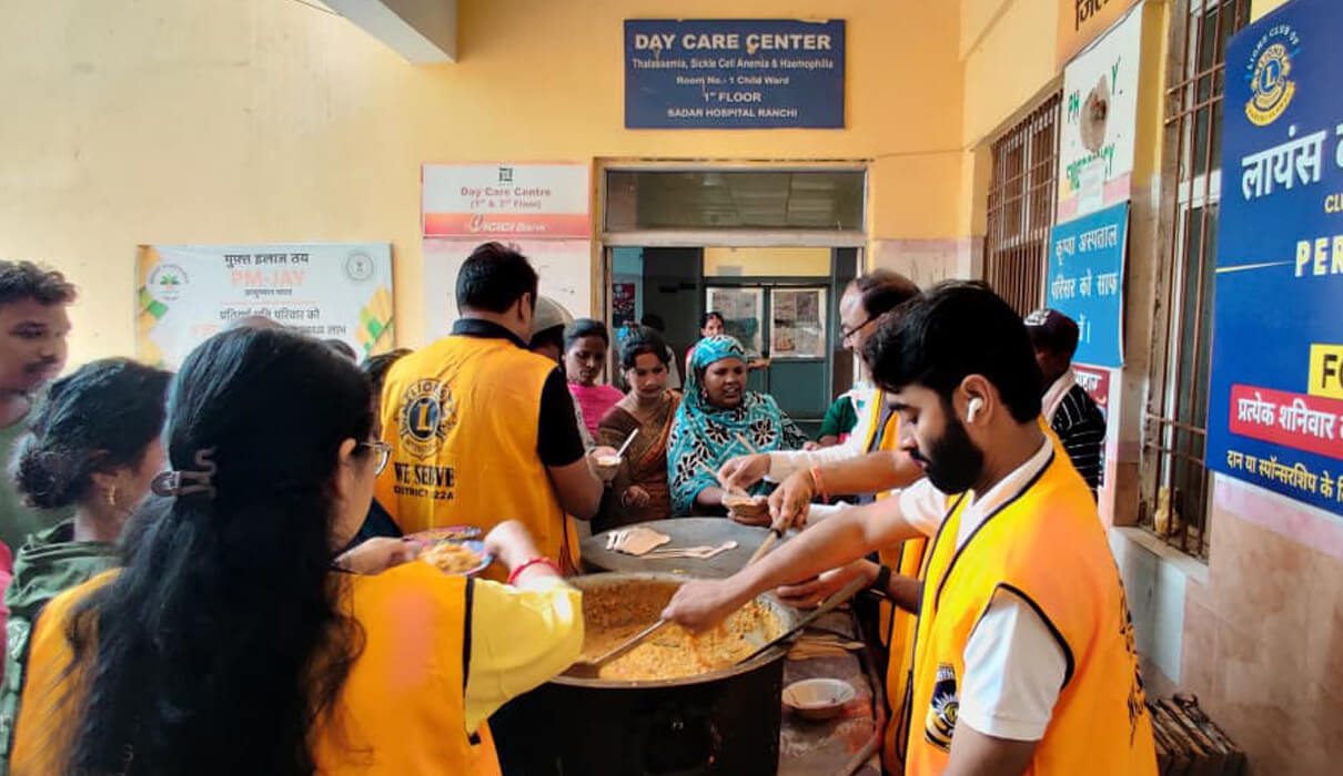 Recognizing that hunger is not confined to the homeless and destitute, but also affects ordinary families waiting anxiously outside hospitals, the Ranchi Global Lions Club of District 322A launched a simple yet deeply meaningful response.