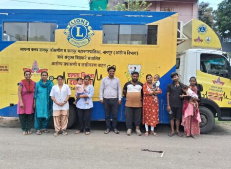 In a neighbourhood in Nagpur, a mother waits with her infant at the steps of a blue-and-yellow mobile clinic. Inside, a doctor prepares for the